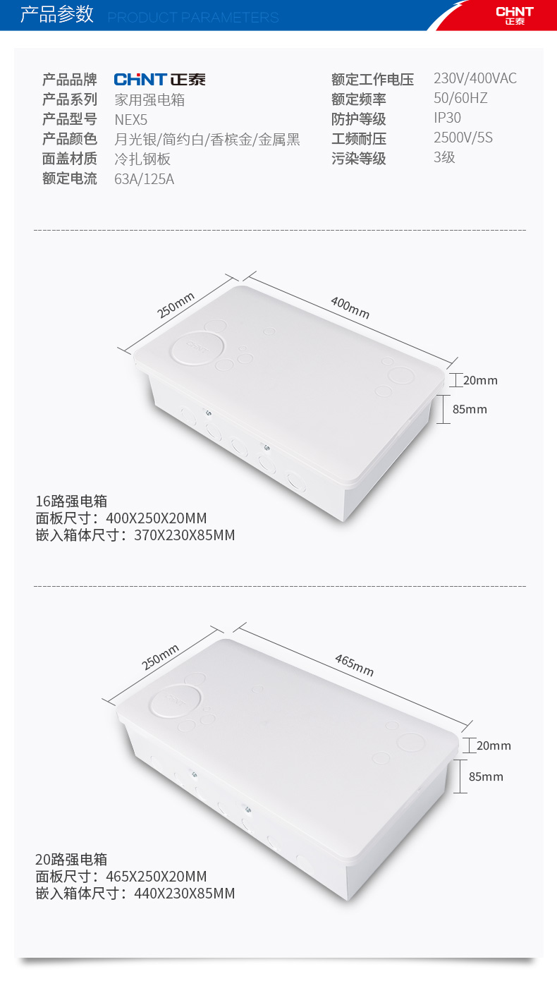 正泰(CHNT)強(qiáng)電箱家裝斷路器空開配電箱20回路暗裝NEX5-20回路銀色 自營