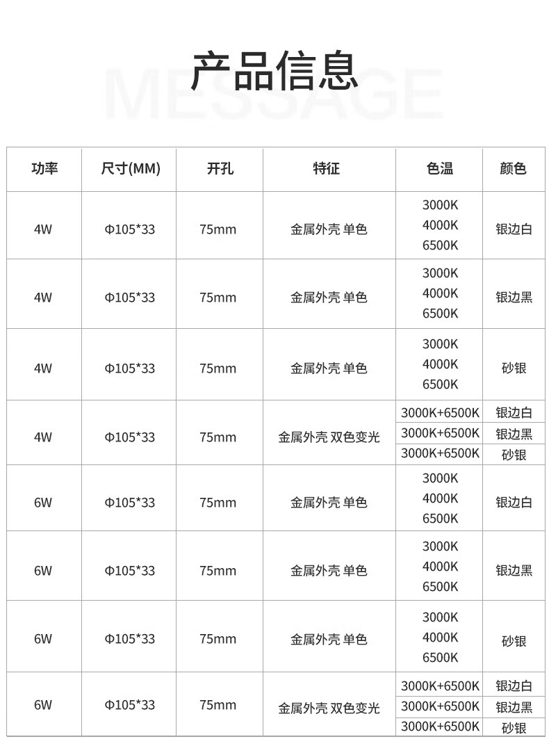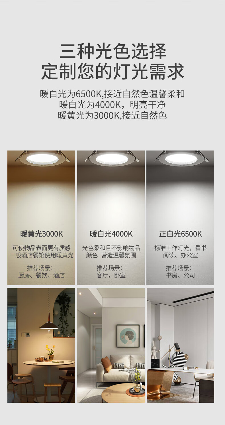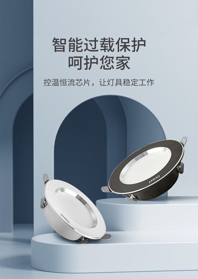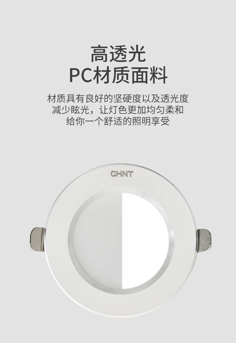 正泰(CHNT)LED筒燈客廳嵌入式天花燈鋁材銀邊白10只裝4W三色光開孔7.5-8.5cm 自營