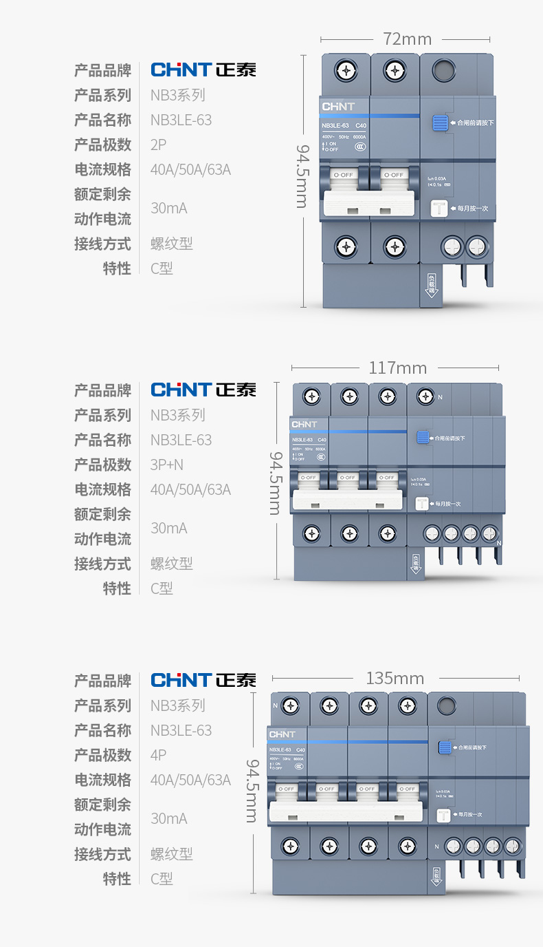 正泰(CHNT)漏電保護(hù)開關(guān)斷路器NB3LE-63K4PD16 自營(yíng)