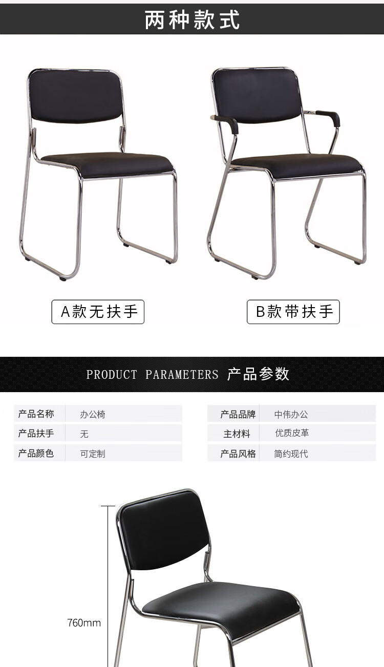 中偉辦公椅職員培訓(xùn)椅簡易會議椅子電腦椅無扶手鋼管椅可疊放