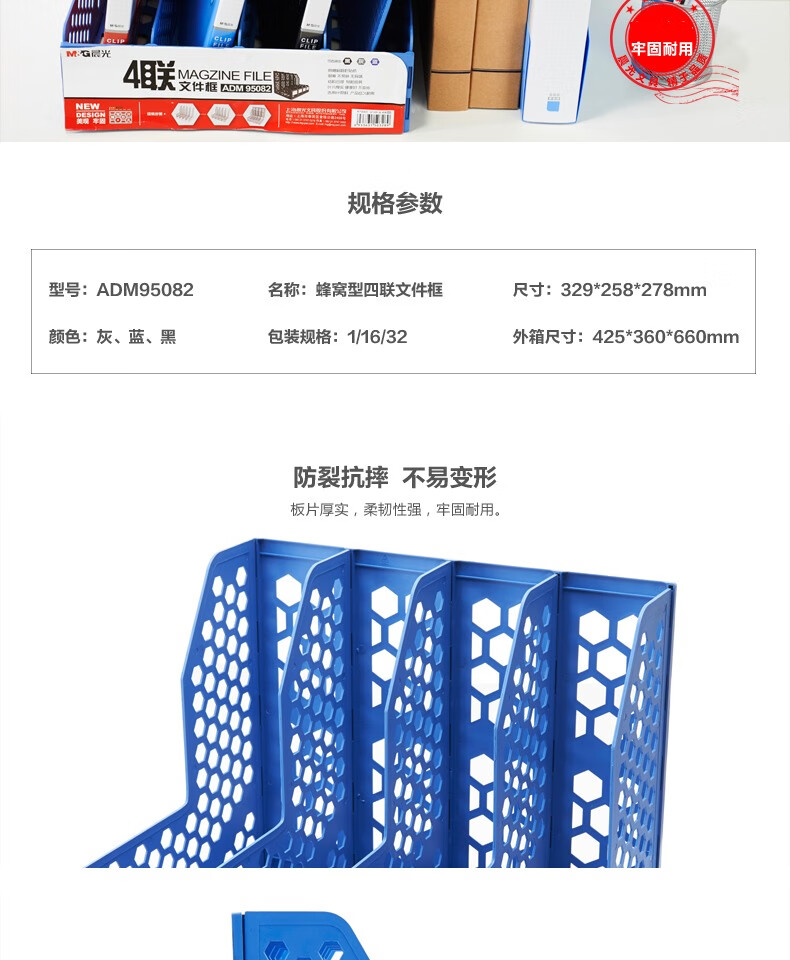 晨光(MG)ADM95082A四聯(lián)文件框文件架子置物架4格文件架資料架蜂窩型鏤空文件欄/4格黑色 自營(yíng)