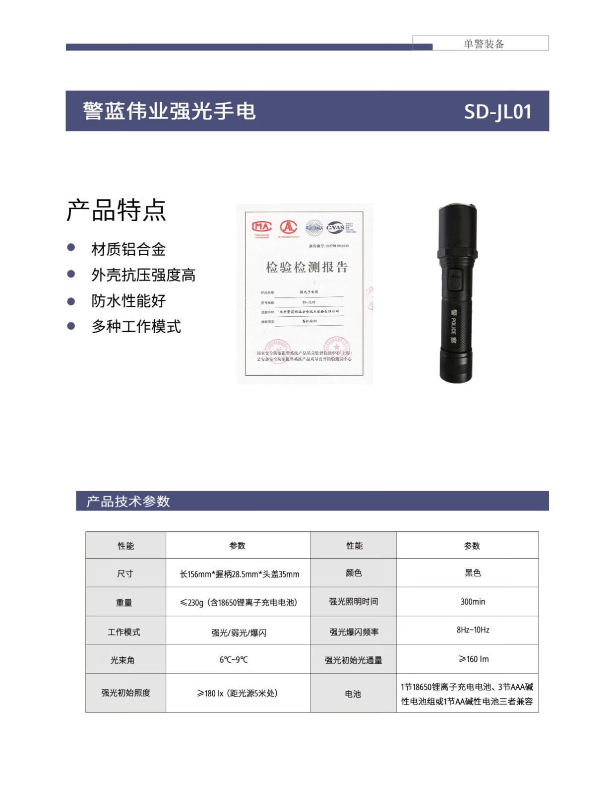 警藍(lán)偉業(yè)強光手電筒LED超亮遠(yuǎn)射車載可充電鋰電池防水防身黑色 自營