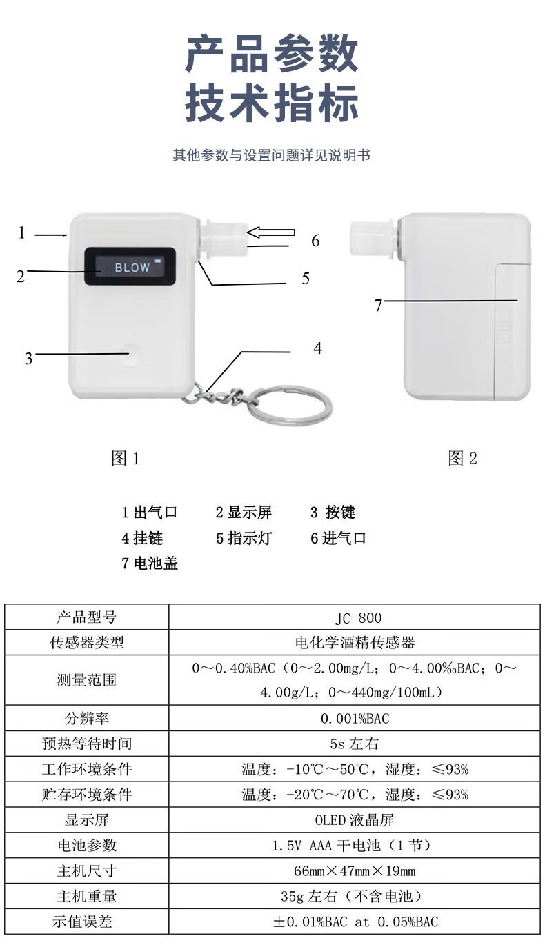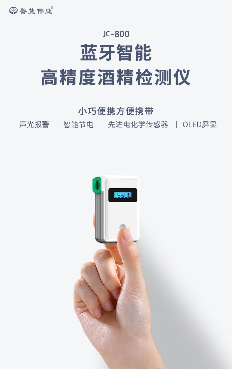 警藍(lán)偉業(yè)吹氣式查酒駕呼氣電子屏顯聲光報(bào)警藍(lán)牙版酒精檢測(cè)儀JC-800白色 自營(yíng)