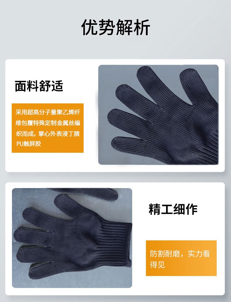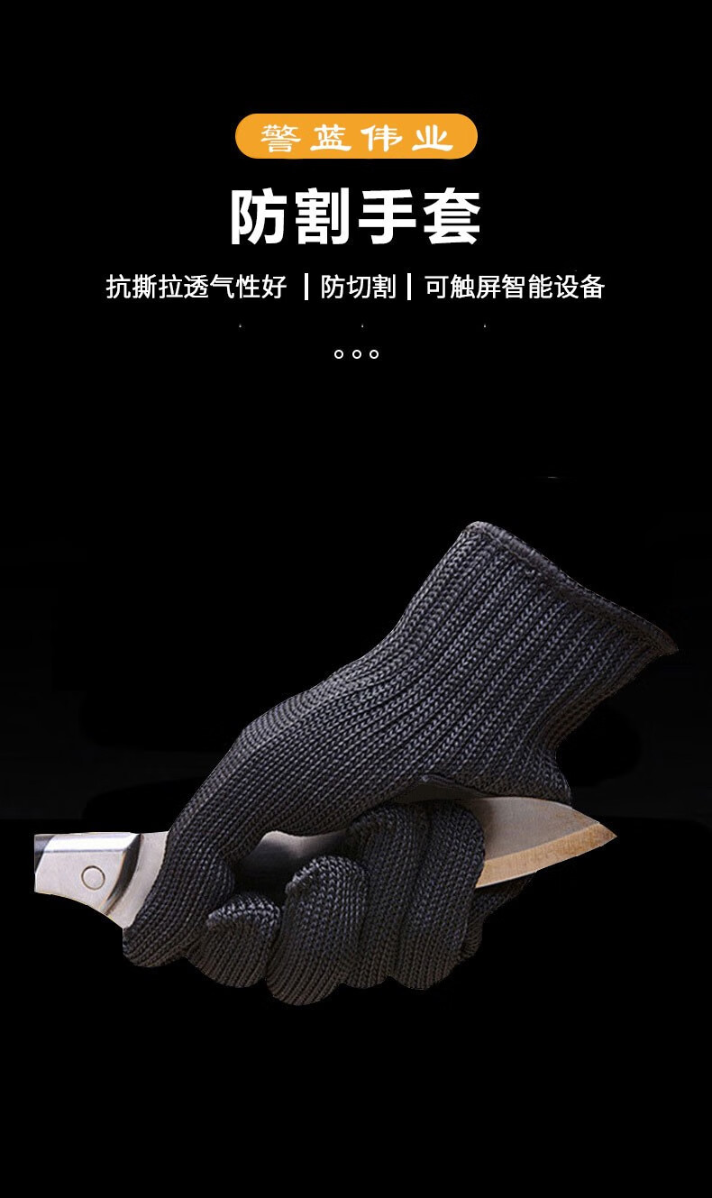 警藍(lán)偉業(yè)防割手套JL-FG01抗劃傷保安器材戶外逃生鋼絲防護(hù)防玻璃耐刀切割黑色 自營(yíng)