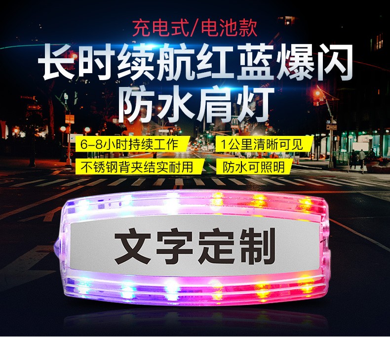 警藍偉業(yè)充電式LED肩燈肩夾式肩燈紅藍爆閃肩燈白色 自營