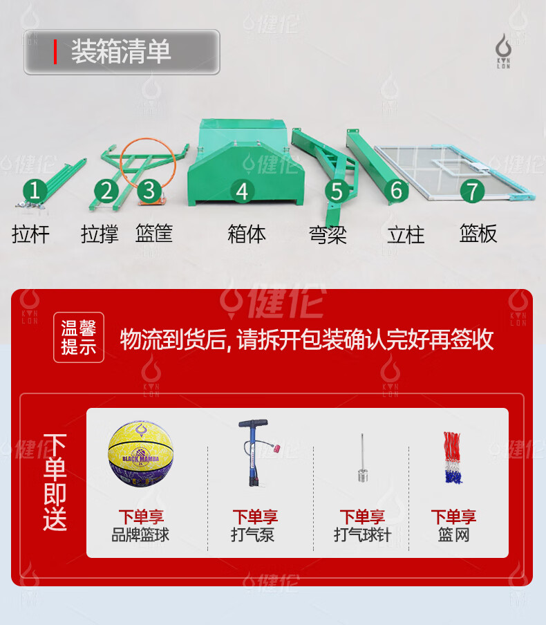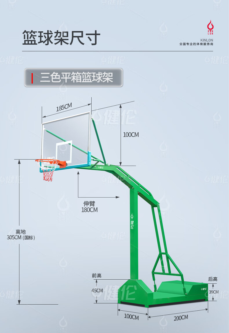健倫成人平箱籃球架加大加厚箱體戶外標(biāo)準(zhǔn)籃球框移動(dòng)三色1支免費(fèi)安裝