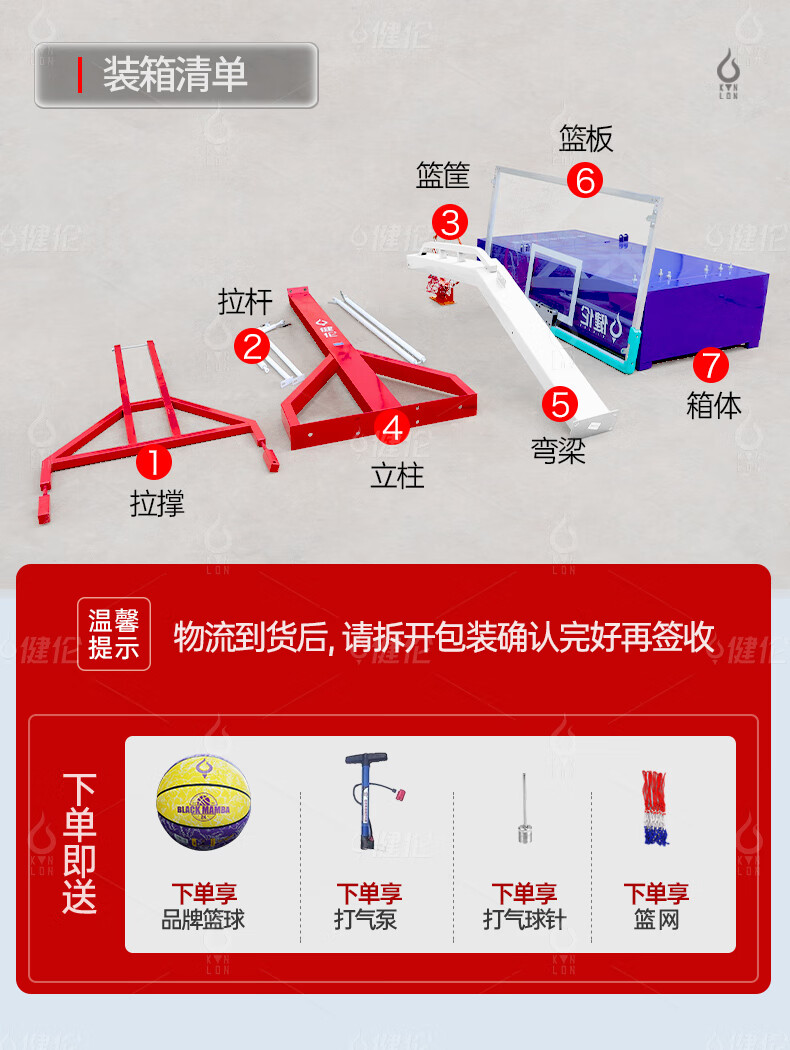 健倫健倫比賽訓練專用加厚加粗立柱升級款平箱籃球架/只