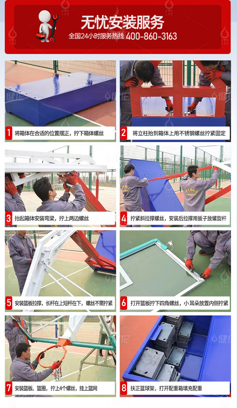 健倫成人平箱籃球架加大加厚箱體戶外標準籃球框移動三色1支免費安裝