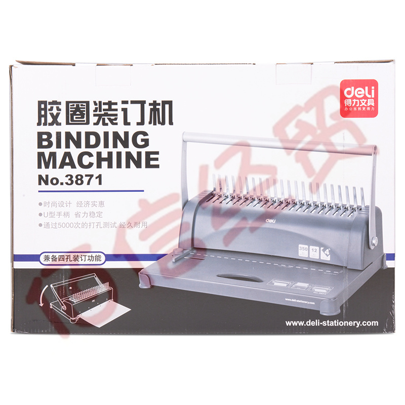 得力(deli)膠圈夾條裝訂機(jī)21孔文件打孔機(jī)梳式財(cái)務(wù)裝訂機(jī)80克A4省力(12張/次)3871 自營(yíng)