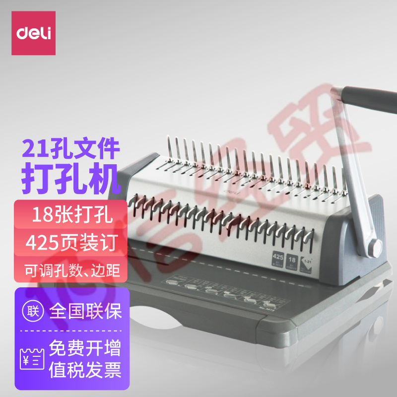 得力(deli)膠圈/夾條裝訂機(jī)21孔文件打孔機(jī)梳式財(cái)務(wù)裝訂機(jī)3873單次可打18張 自營
