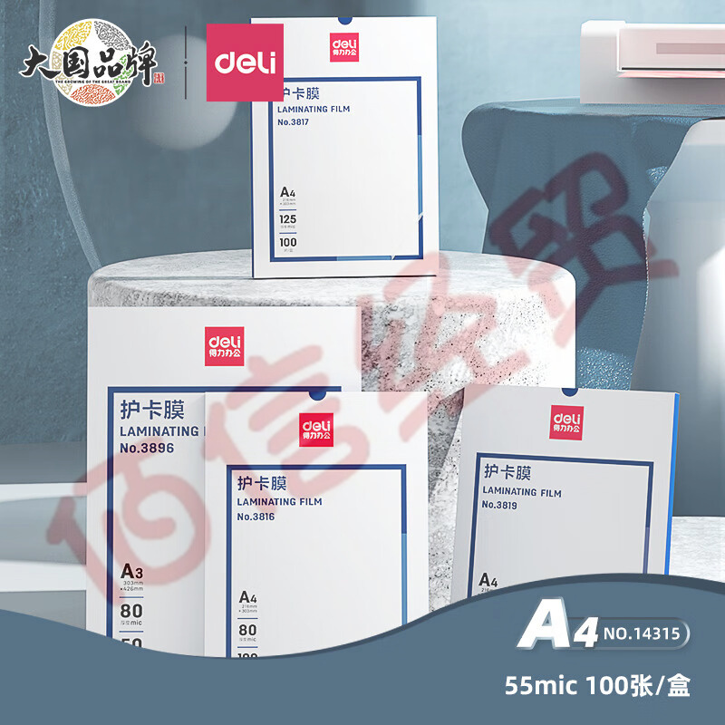 得力(deli)過(guò)塑機(jī)塑封機(jī)膜過(guò)塑膜優(yōu)質(zhì)護(hù)卡膜/塑封膜305*220mmA455mic厚度100張/包14315 自營(yíng)
