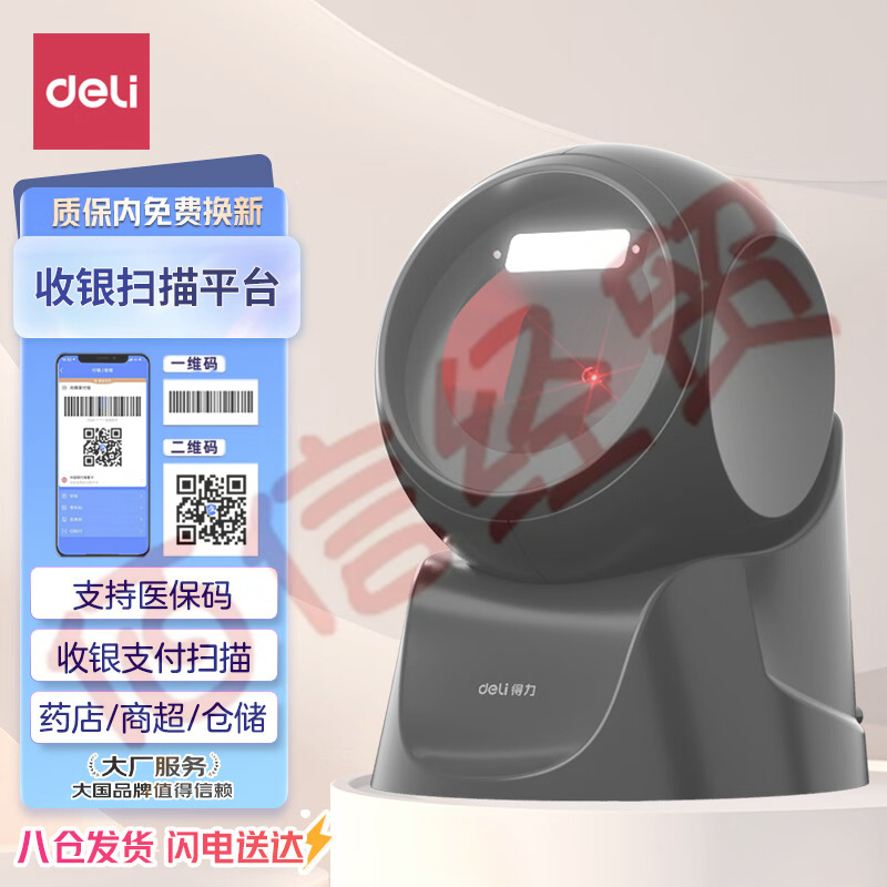 得力掃碼槍掃描器掃碼掃描槍收銀收款器掃描平臺盒子快遞物流超市倉庫備件二維碼掃碼器14963 自營