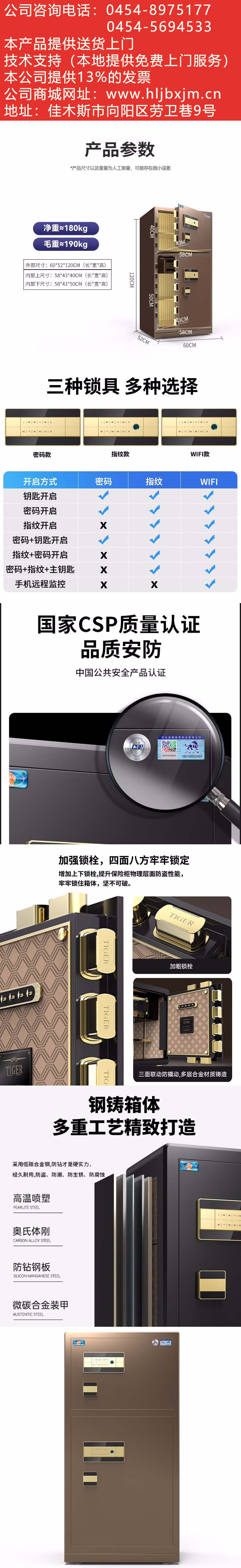 虎牌保險柜家用辦公小型國標認證保險箱150cm指紋密碼全鋼防盜財務專用保密柜 尊虎系列 咖啡金