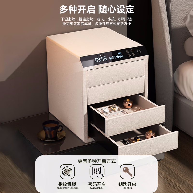 虎牌保險(xiǎn)柜家用小型指紋密碼保險(xiǎn)箱皮革首飾盒智能收納箱藍(lán)牙全鋼防盜抽屜柜保管柜 沉穩(wěn)灰(三層增高) 自營