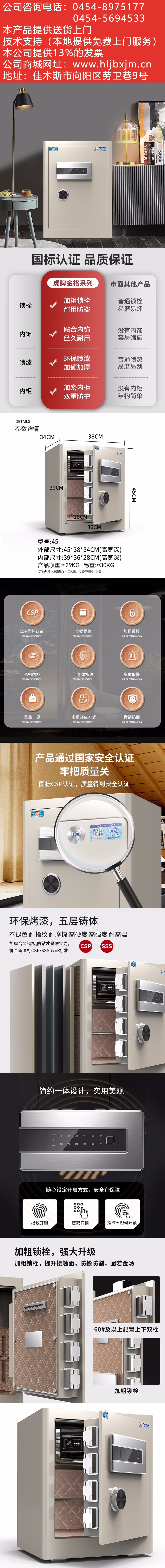 虎牌保險(xiǎn)柜家用辦公小型國標(biāo)認(rèn)證保險(xiǎn)箱45cm指紋密碼全鋼防盜財(cái)務(wù)專用保密柜 金格系列 象牙白 自營