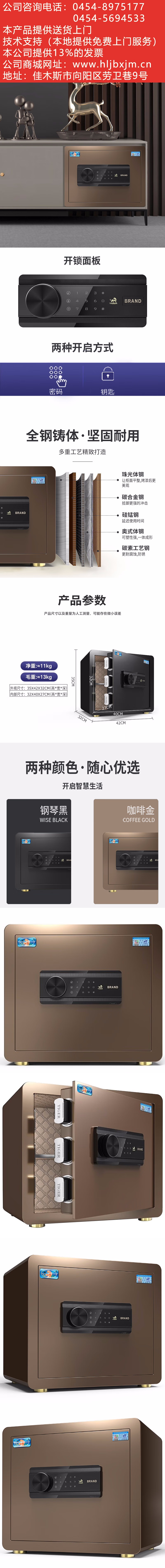 ¥1029.00虎牌保險(xiǎn)柜家用辦公小型電子密碼免鑰匙保管柜全鋼防盜床頭保險(xiǎn)箱可入墻入柜 博瑞系列 35cm 咖啡金