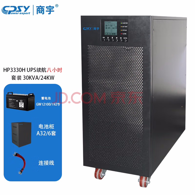 ¥240000.00商宇UPS不間斷電源 HP3330H在線式27kW高頻機(jī) 機(jī)房應(yīng)急穩(wěn)壓備用電源 SY21款 不包含電池需單獨購買 續(xù)航8小時配192節(jié)100AH+6*A32電池柜