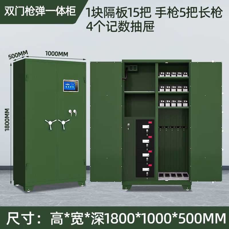 匯云星智能槍柜防爆防盜密碼鎖鋼制器械柜軍綠色雙門槍彈一體柜 自營