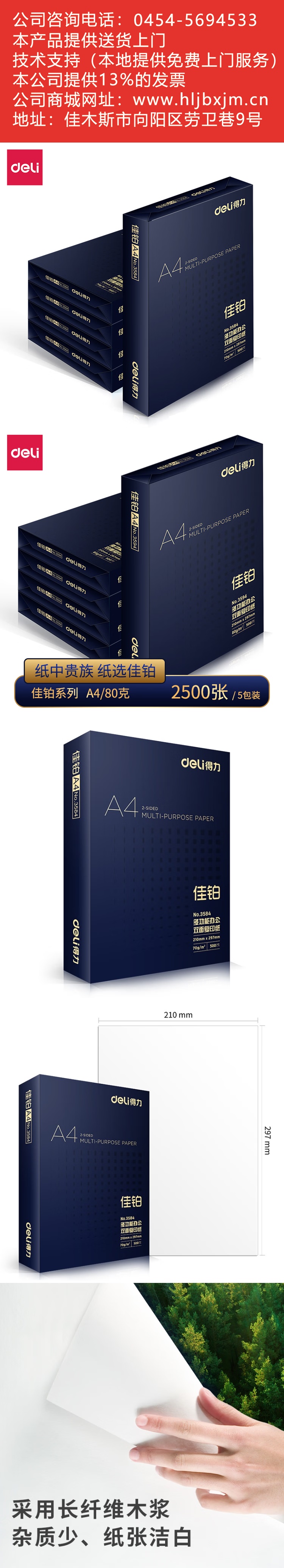 得力佳鉑A4打印紙8包70G