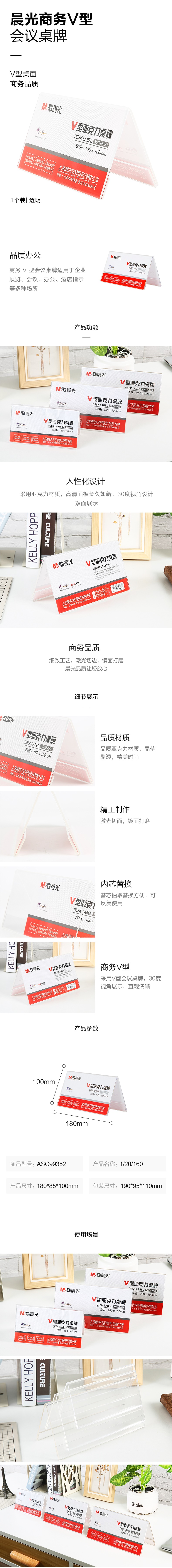 晨光商務(wù)V型會議桌牌180*100mmASC99352