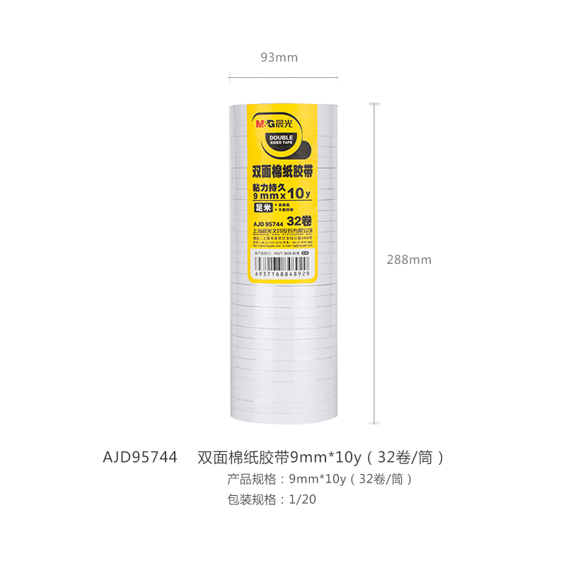 晨光雙面棉紙膠帶9mm*10y(32卷/筒)AJD95744 自營