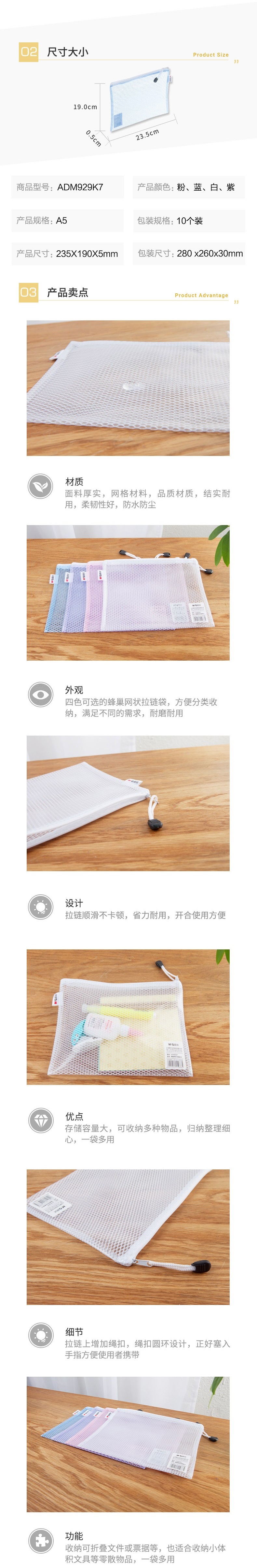 晨光蜂窩網(wǎng)狀拉鏈袋A4ADM929K5 自營