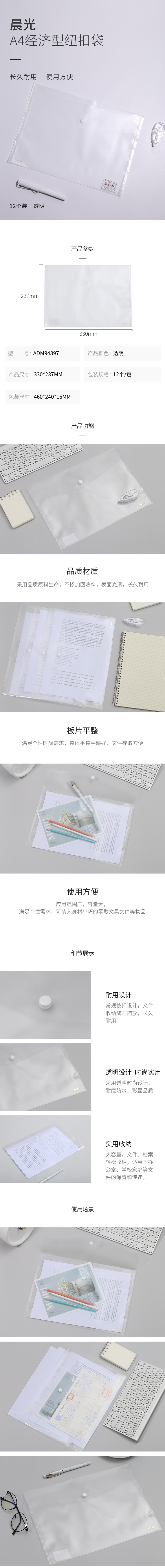 晨光A4經(jīng)濟(jì)型紐扣袋ADM94897 自營