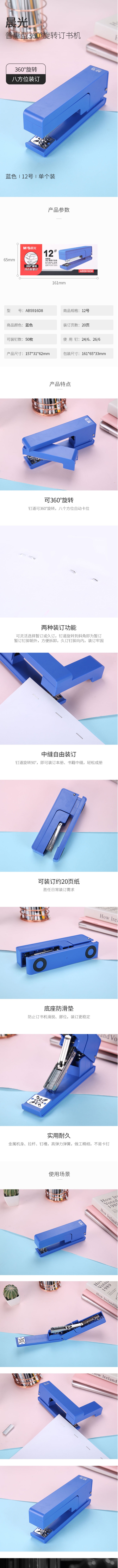 晨光普惠型360°旋轉12號訂書機灰ABS916D8 自營