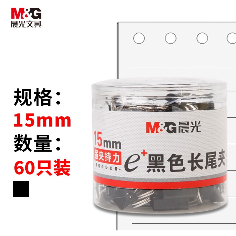 晨光Eplus黑色長(zhǎng)尾夾15mm(筒裝)ABS92737 自營(yíng)