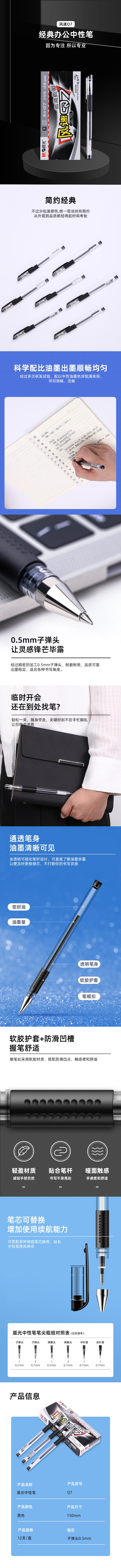 得力(deli)0.5mm黑色中性筆金屬噴漆筆 子彈頭簽字筆 12支/盒