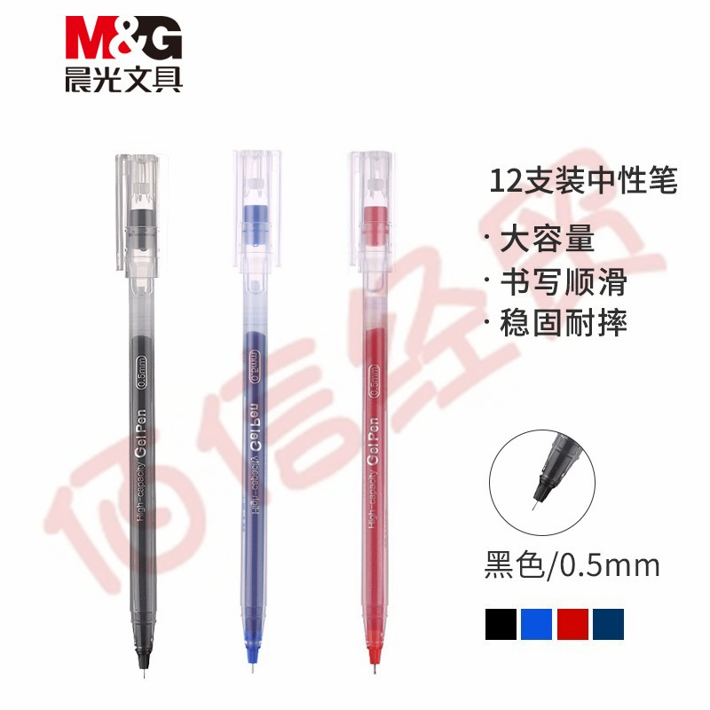 ■晨光0.5mm藍色中性筆--筆桿筆芯一體化--12支/盒AGPB6901 自營