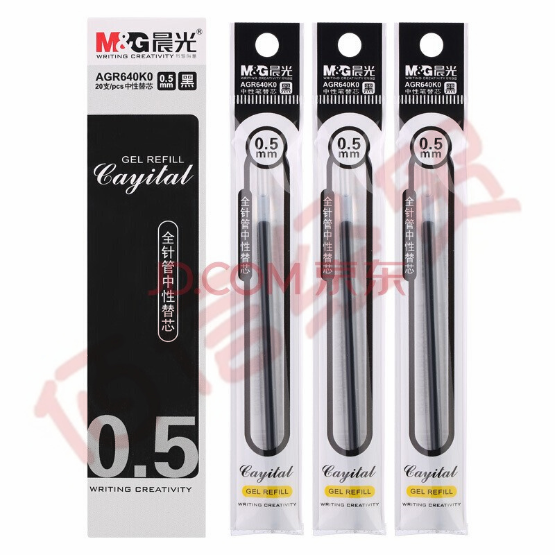 ■晨光05mm黑色中性筆芯全針管簽字筆替芯20支 AGR640K0黑色 自營