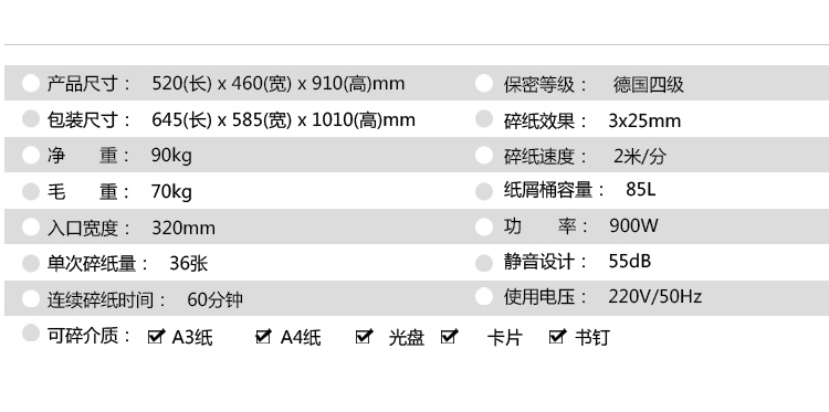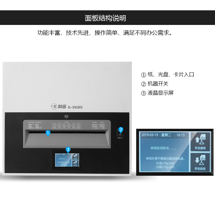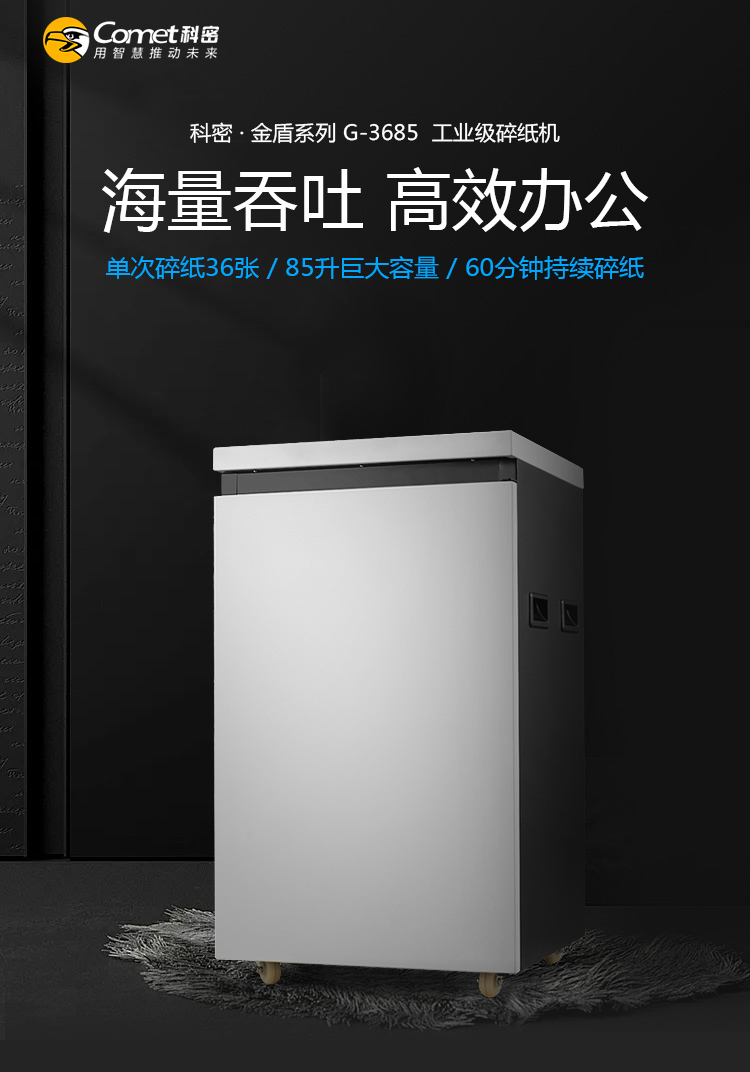 科密(comet)商用辦公高保密碎紙機 大型長時間大吞吐文件光盤卡粉碎機 金盾系列 G-3685 自營