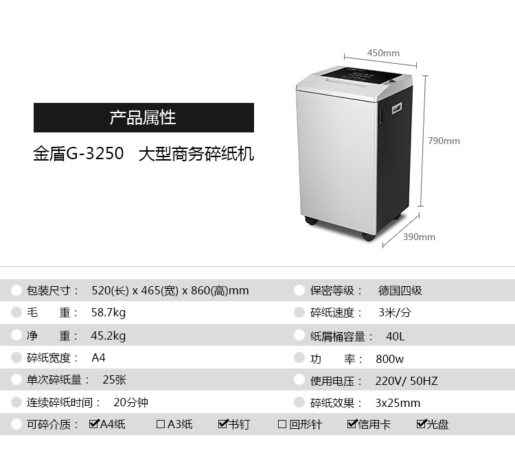 科密金盾G-3250碎紙機(jī) 大型大功率大容量多功能商務(wù)單位辦公用粉碎機(jī) 25張40升碎紙光盤信用卡 自營