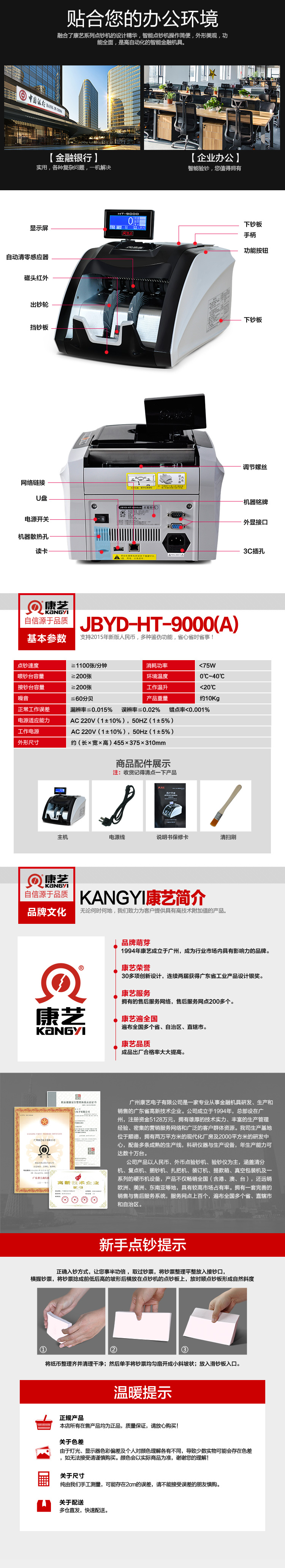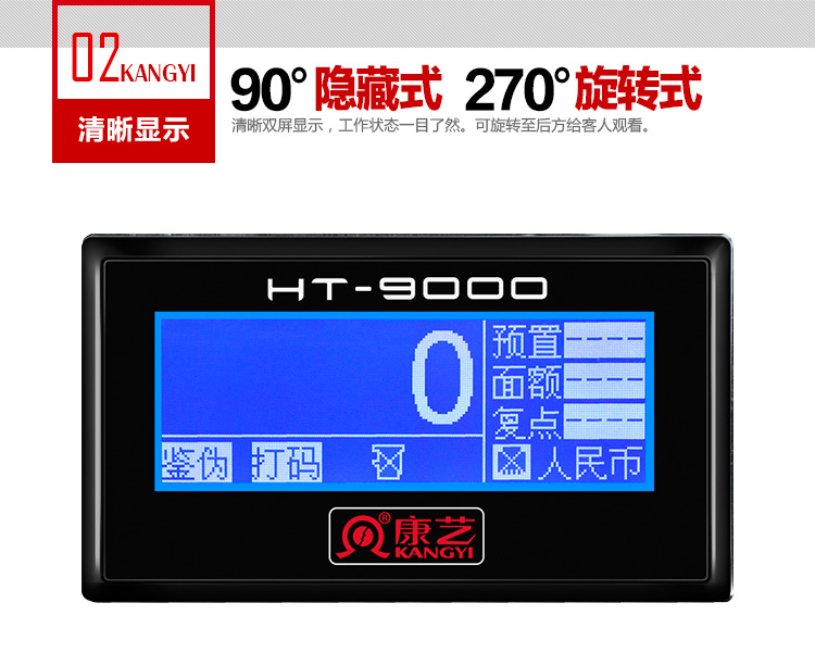 康藝(KANGYI)JBYD-HT-9000(A)冠字號識別新版人民幣驗鈔 銀行專用智能A類點鈔機 自營