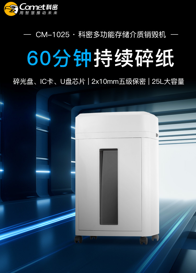 科密碎紙機(jī)CM-1025 多功能存儲介質(zhì)銷毀機(jī) 可碎紙、光盤、IC卡、芯片 國保測認(rèn)證保密等級二級 25L 自營