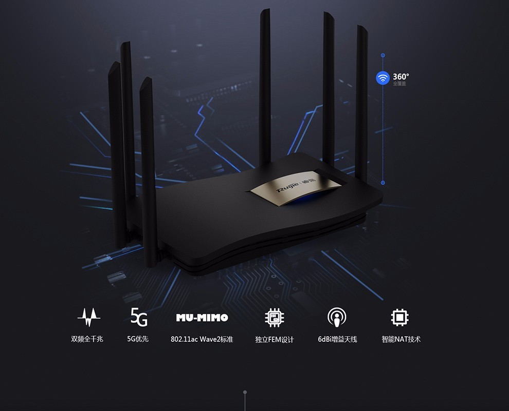 ¥2996.00銳捷(Ruijie)無線路由器 千兆RG-EW1200G pro雙頻wifi信號放大器1300M 黑色