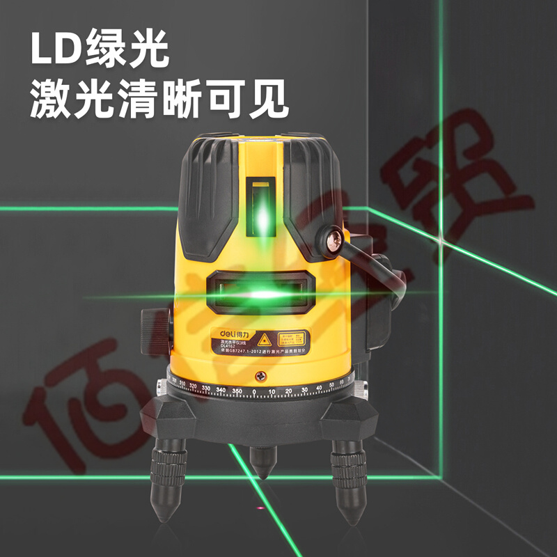 ■得力(deli) 水平儀綠光投線儀激光2線3線5線高精度貼墻儀綠光室內外強光自動打線標線儀 3線水平儀DL4162 自營