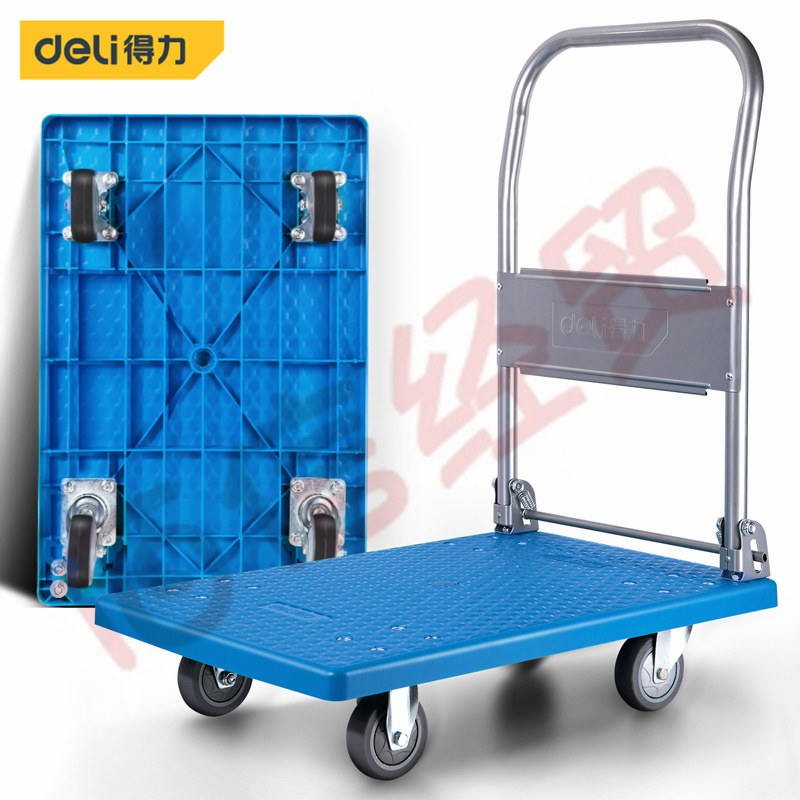 ■得力(deli)輕音輪平板車手推車折疊手拉車拖車小推車?yán)涇囁芰习徇\(yùn)車 小號(hào)73x47cm 承重約300斤 DL431150 自營