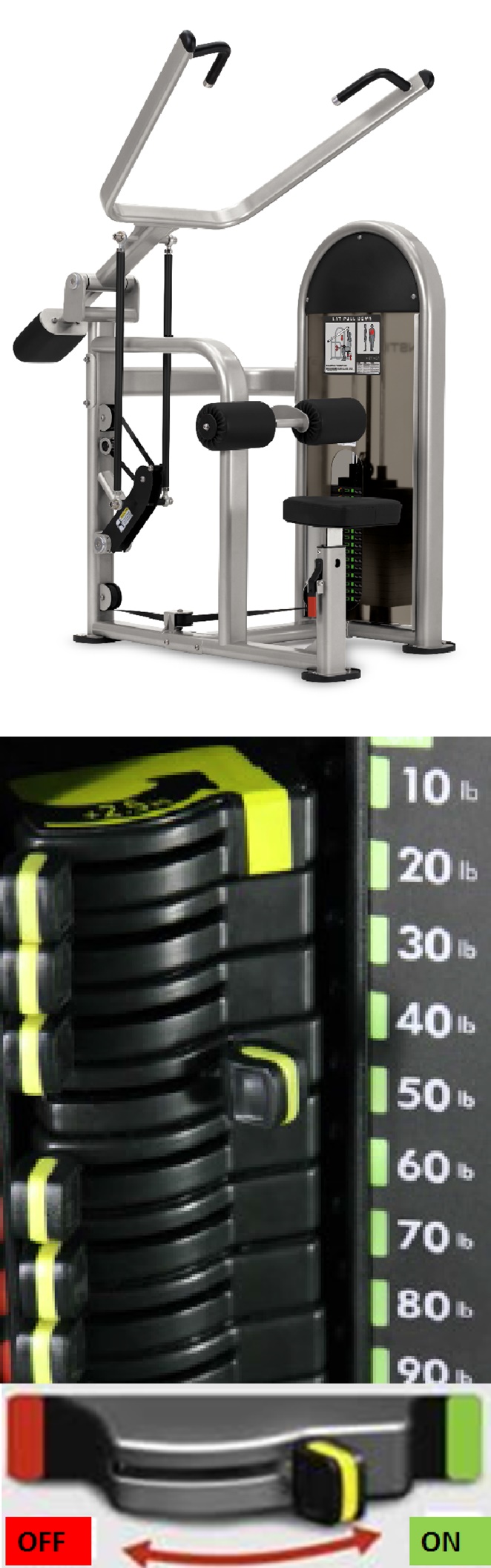 技術(shù)參數(shù): ●外觀尺寸(長寬高):60?x 47?x73?(152 x 119 x 185 cm) ●重量:515 lb (234 kg) ●配重:235 lb (107 kg) ●全球領(lǐng)先的“LOCK N LOAD”專利撥片式調(diào)節(jié)系統(tǒng),調(diào)節(jié)重量無需拔上拔下,只需輕輕一撥即可。 ●采用40mm x 80mm,50mm x 100mm橢圓管,堅固穩(wěn)定;部件均經(jīng)激光精確切割,外觀俊朗;精鋼制造直徑1"的滾軸配有25mm密閉軸承,密閉式軸承則能夠確?;喒ぷ鲿r的平滑安靜; ●標(biāo)準(zhǔn)美制高強(qiáng)度皮帶式傳動,可承受2000lbs拉力,同時通過皮帶上5/8"的螺旋螺紋可以調(diào)節(jié)皮帶的松緊度,更加延長了*大使用壽命; ●滑輪采用玻璃纖維制造的強(qiáng)化滑輪配有深V字型凹槽,確保皮帶的穩(wěn)定,并擁有出色的旋轉(zhuǎn)性能。 ●舒適的橡膠材質(zhì)的高把手。 ●單向棘輪,五檔位座墊調(diào)節(jié),低摩擦設(shè)計插拔螺栓,穩(wěn)定安全。 ●動態(tài)的使用說明指示牌。 ●座椅和大腿護(hù)墊可調(diào)---動作幅度更大 ●杠桿驅(qū)動動作---可傳遞平滑阻力曲線 ●加襯握把---直徑小,使提拉練習(xí)更舒適