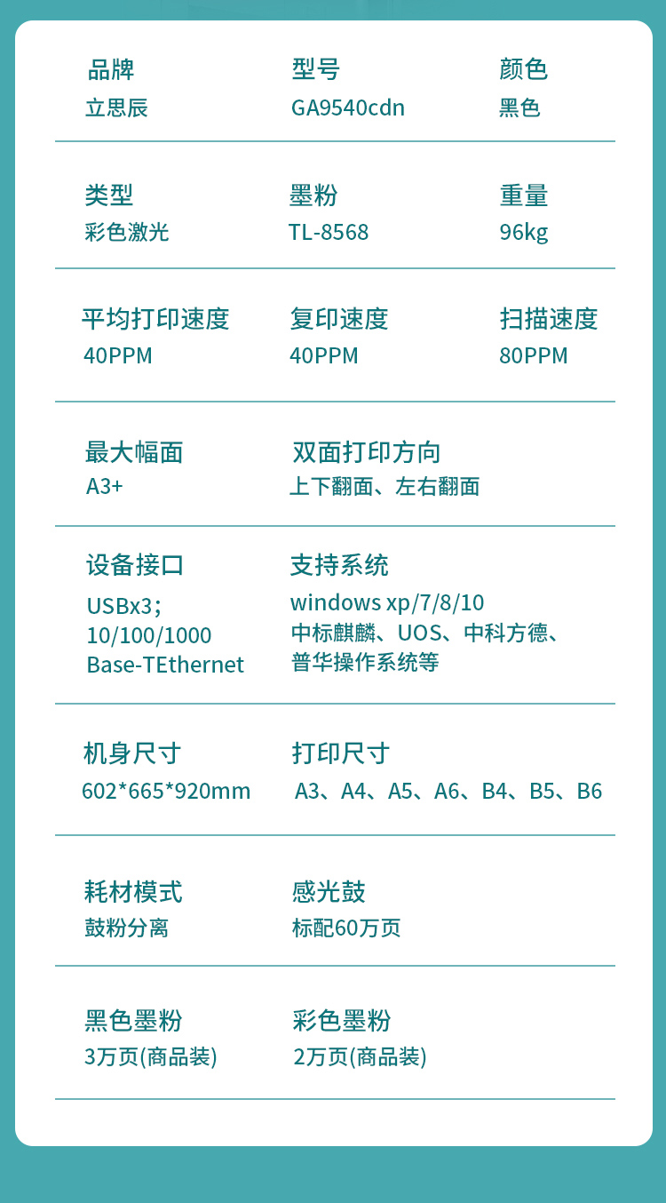 立思辰(LANXUM)A3彩色多功能一體機GA9540cdn、數(shù)碼復合機、打印機、打印/復印/掃描 定影組建 自營