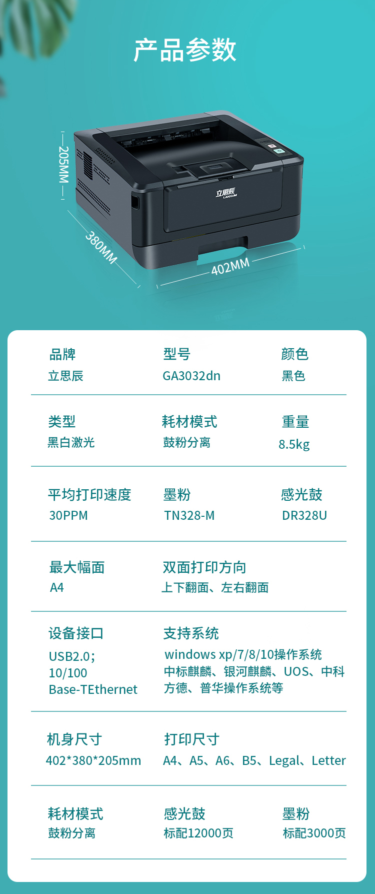 立思辰(LANXUM)A4激光黑白打印機(jī)GA3032dn 、A4幅面、黑白激光、網(wǎng)絡(luò)打印 自營(yíng)